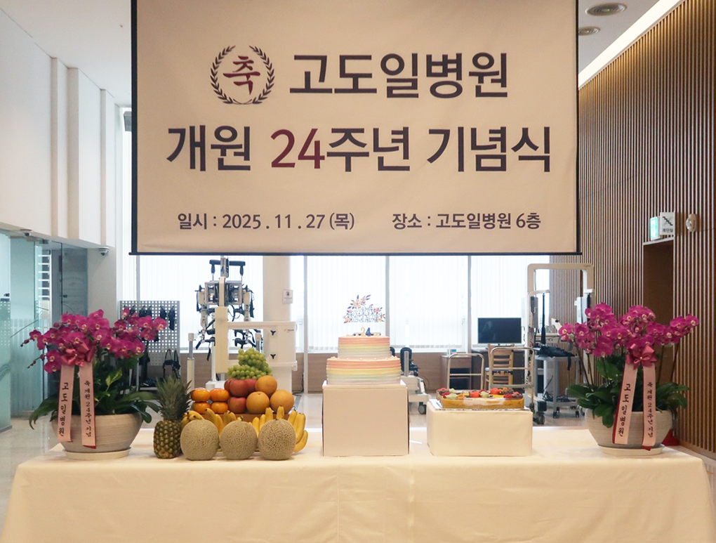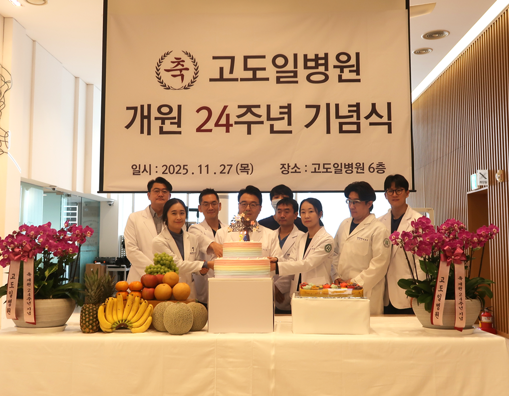 개원 24주년을 맞이하신 고도일 원장님께서는 내년 26년도 병원 확장 공사를 통한 내과 신설과 치료 역량 확대라는 새로운 비전을 제시하며 고도일병원의 미래 청사진을 발표하셨습니다.