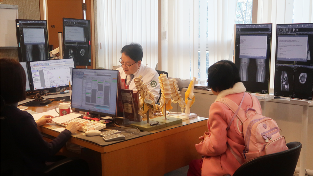 주민분들이 걸어온 시간만큼이나 그 속에 담긴 사연 또한 참 다양했습니다. 여러 병원을 전전하며 허리 치료에 매달렸지만 좀처럼 차도가 없어 속상했다는 안타까운 사연부터, 며칠 전부터 시작된 왼쪽 무릎 통증으로 걷기가 두렵다는 고민까지. 고도일 병원장님께서는 찾아주신 주민 한 분 한 분을 따뜻한 미소로 맞이하시며, “어디가 가장 불편하세요?”라는 다정한 인사로 지역민들을 맞이하시며, 진료에 임하셨습니다.